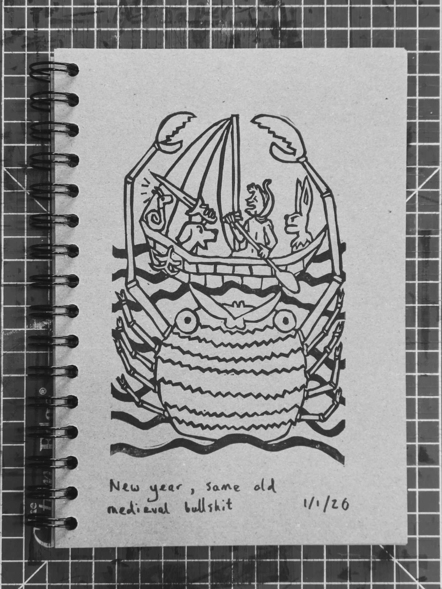 I’ve recently started archiving my old prints from oldest to newest by reprinting them from the oringal tiles in a big hardcover sketchbook.