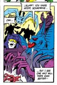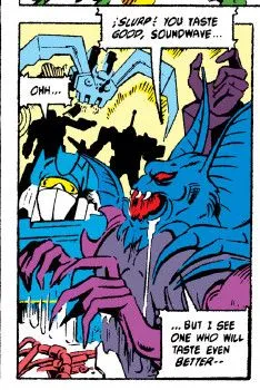 Soundwave in his correct, original Marvel US colour scheme with an original art error of him having a face, newly “corrected” to: